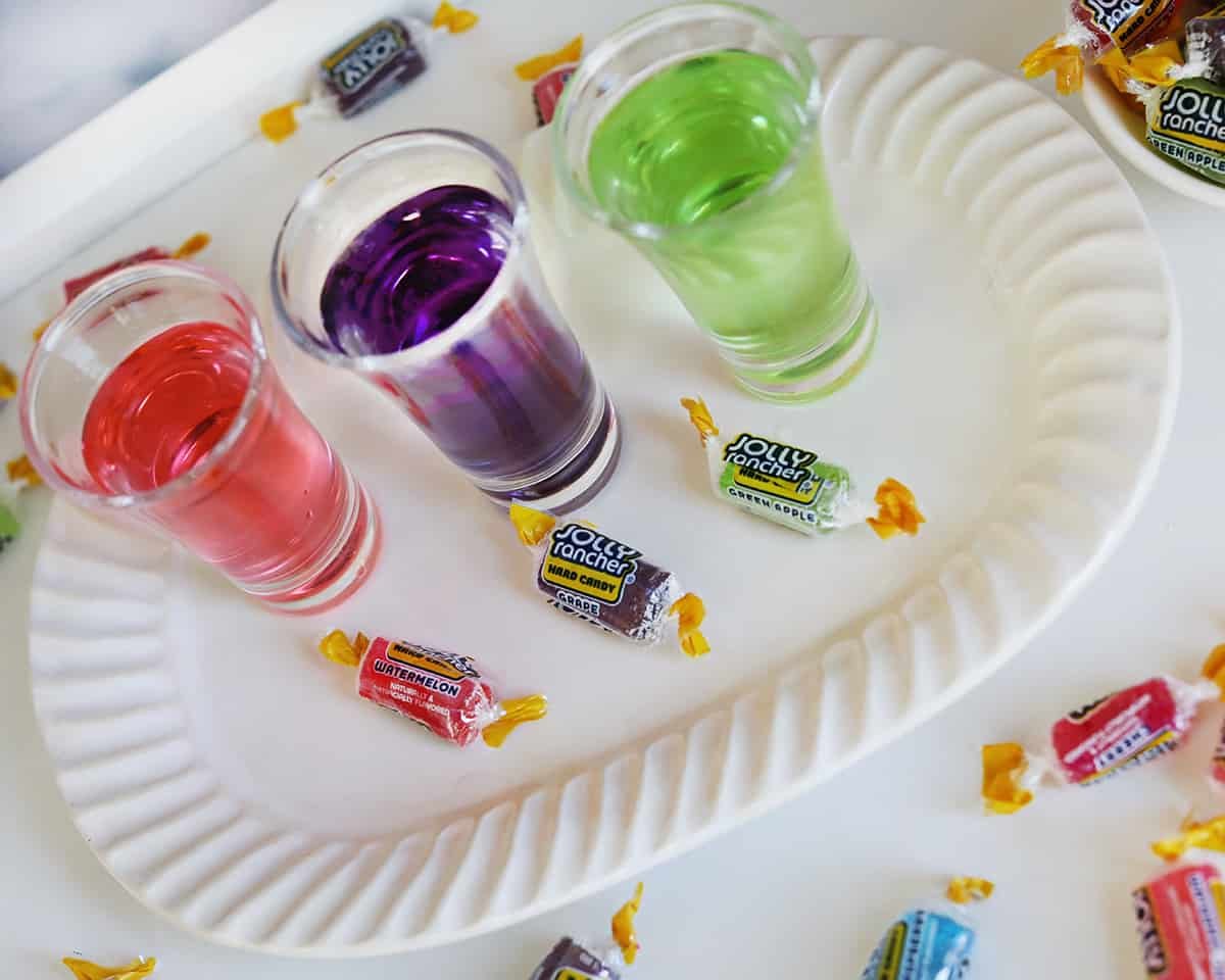 If you love jolly rancher candies then you must try these super fun jolly rancher shots. Try the delicious, sweet explosion of a jolly rancher shot! Jolly rancher candies come in many flavors like orange, pineapple, cherry, blue raspberry and more.