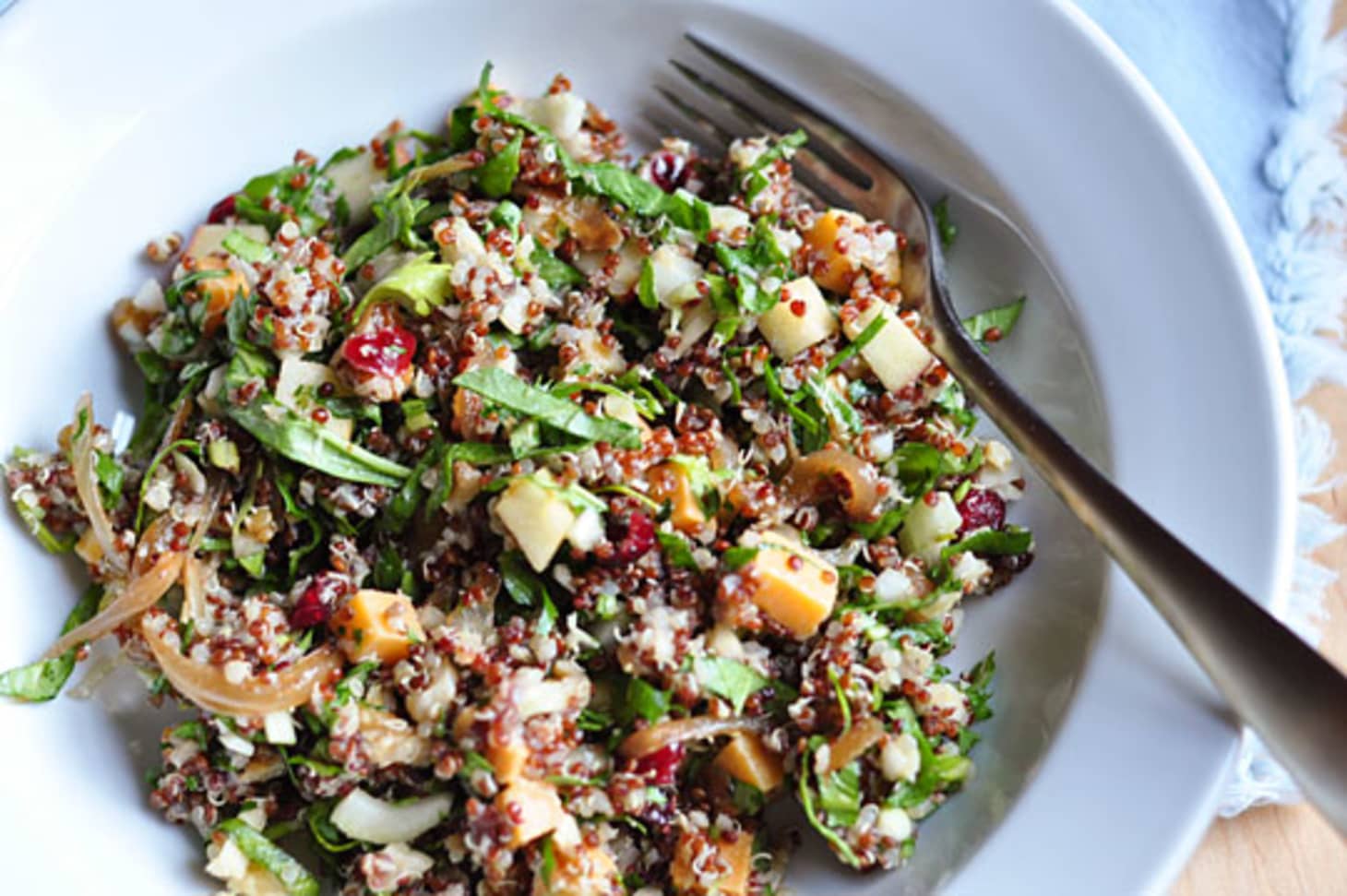 Another creative recipe is "Quinoa Risotto with Roasted Butternut Squash and Sage," which replaces traditional Arborio rice with quinoa, adding a nutty flavor and a higher protein content to the classic Italian dish.